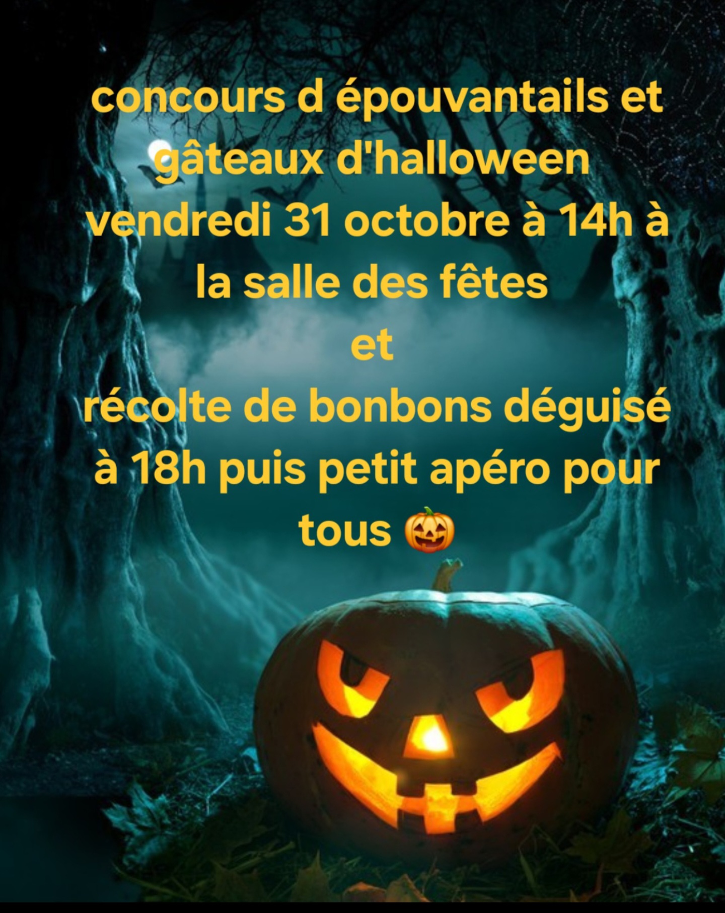 Bonjour a tous voici le programme pour halloween le vendredi 31 octobre : Concours d épouvantail et de gâteaux d’halloween a la salle des fetes à 14h. Vous pouvez d’ores…